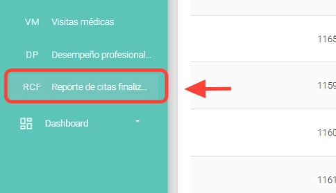 Dirígete a la sección Estadísticas > Reporte de citas finalizadas.